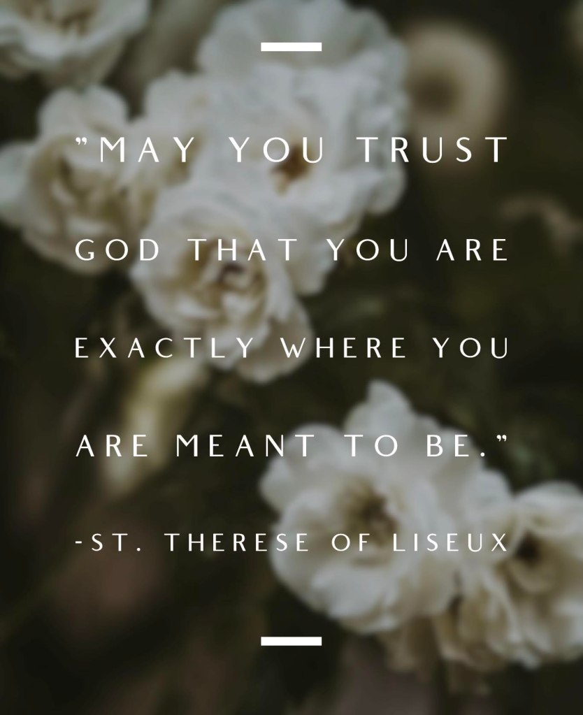 If you are going through a difficult time or a wonderful time or somewhere in between the two, remember to trust in God that you are exactly where you are meant to be. Be still. Listen to Him. Have faith. Do good. And know His plan is always better than our own.